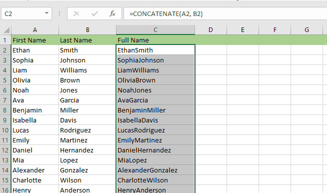 NOTE: The CONCATENATE function is available in older versions of Excel but has been replaced by CONCAT in newer versions.