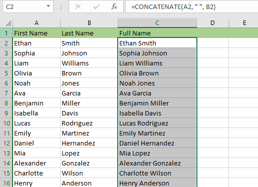 Method 1: Using the CONCATENATE Function (Excel 2016 and Earlier)