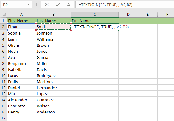 Method 3: Using the TEXTJOIN Function (For Advanced Users)
