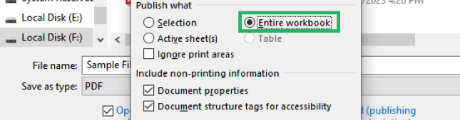 Step 3: Under “Publish what,” choose “Select Entire Workbook.”
