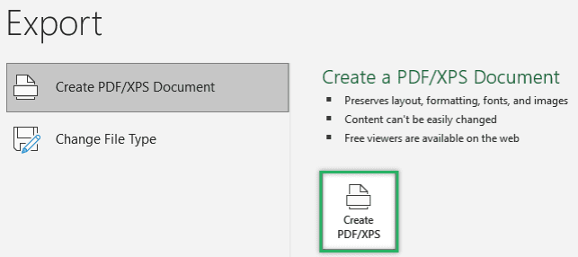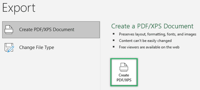 Step 2: Go to File Tab > Export > Create PDF/XPS.