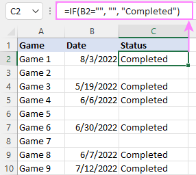 IF blank formula: cells with dates return “Completed”, empty cells return blank